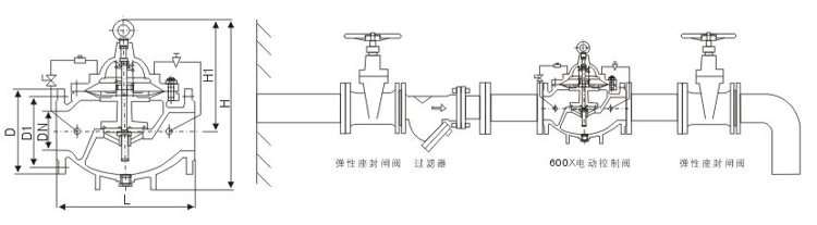 600X電動控制閥由主閥、電磁導閥、針閥、球閥、微形過濾器和壓力表組成水力控制接管系統。通過電磁導閥可以實現對閥門開啟和關閉的遙控。加裝附加裝置后,可控制開啟和關閉的速度。電控水力控制閥利用導閥控制閥門的開啟和關閉,節省能源。可代替其它閥門大型電動裝置。電控水力控制閥產品廣泛用于高層建筑、生活區等供水管網系統及城市供水工程。