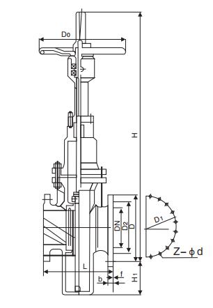 Z43H帶導(dǎo)流平板閘閥主要尺寸及重量